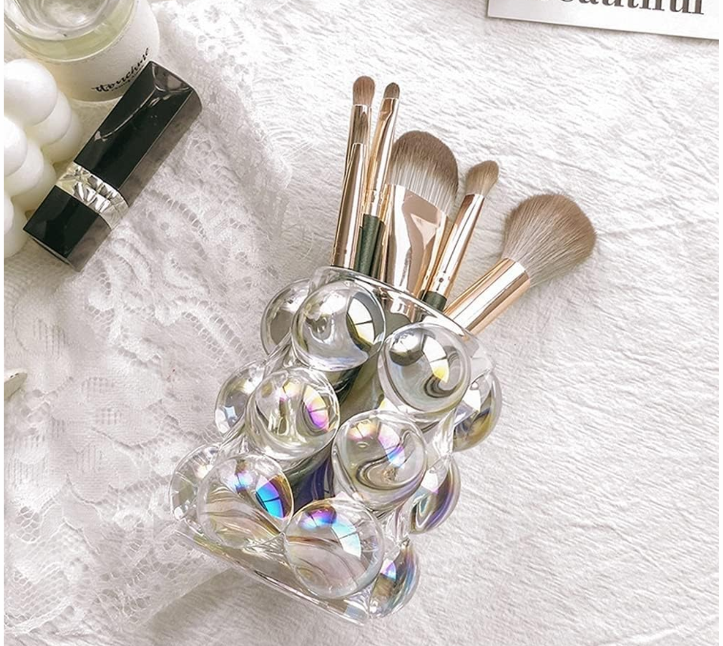 【Multifuncional】Organizador brochas maquillaje no es solo un soporte para brochas de maquillaje, delineador de ojos, lápiz de cejas. sino también una hermosa decoración para su tocador y su baño. La apariencia única se puede utilizar como florero, arreglo floral o plantación verde