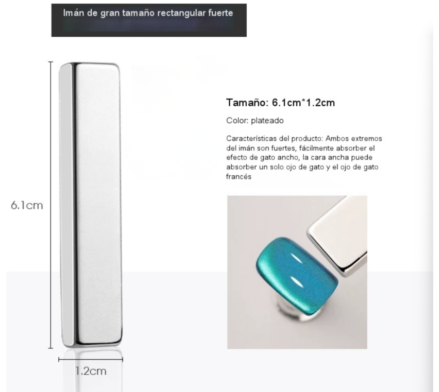 Iman rectangular plano/ Iman ojo de gato/ Iman para uñas